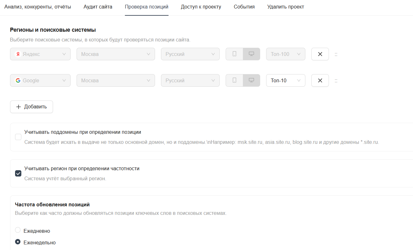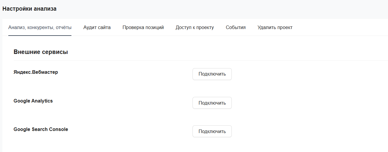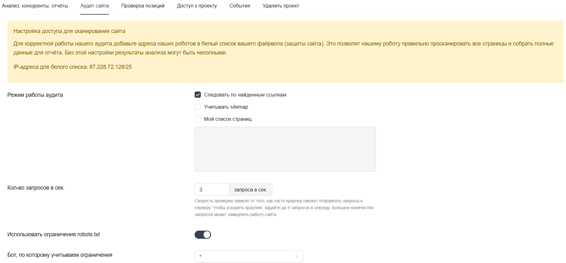 Рекомендуем выполнить все настройки для максимально полного и качественного анализа сайта.