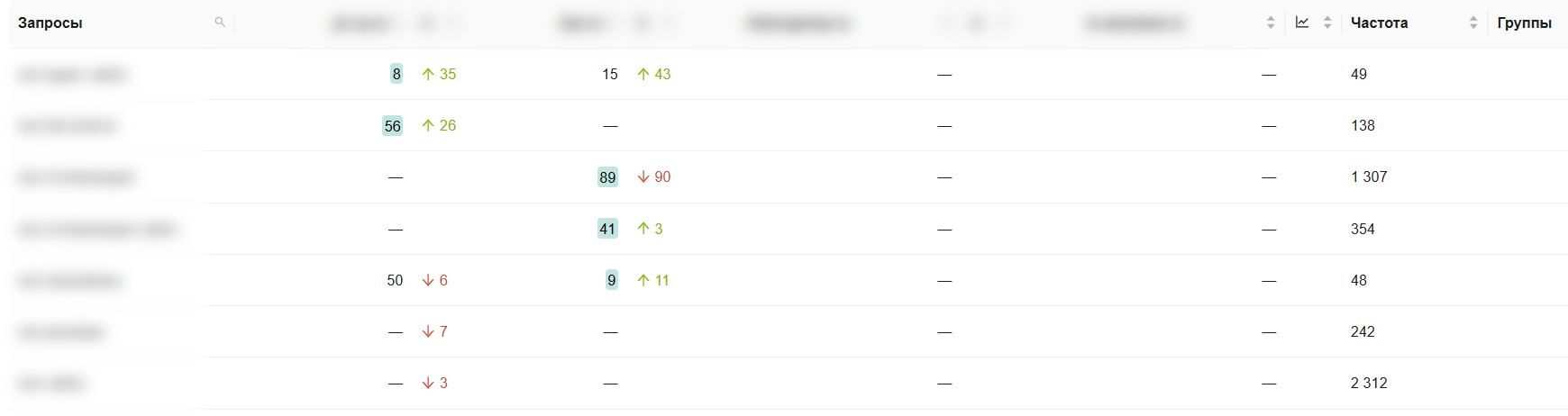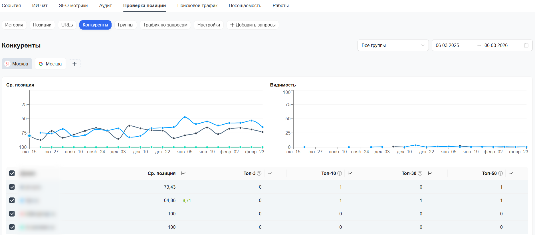 Этот отчет показывает сравнение позиций вашего сайта с позициями конкурентов.