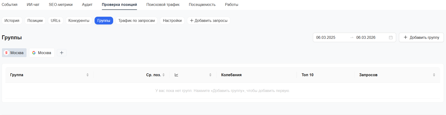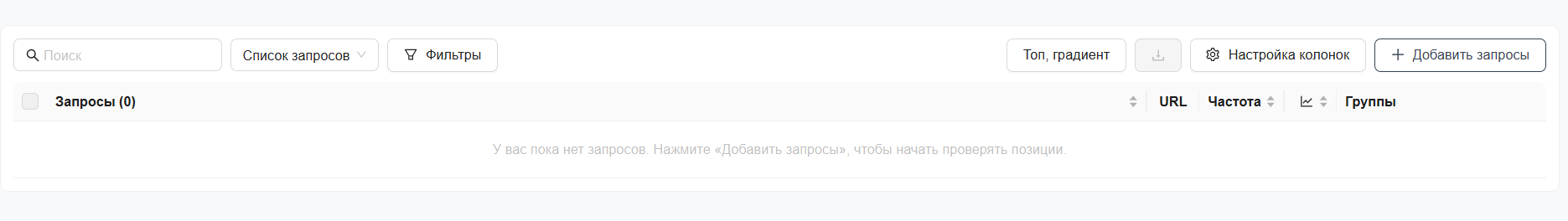 Перейдите в группу. Там пока нет запросов. Нажмите «Добавить запросы».