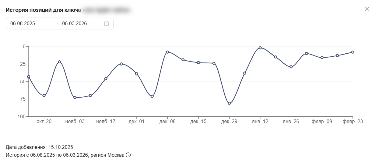 Можно посмотреть историю изменений позиций для каждого ключа по отдельности. Для этого кликните на нужный ключ.