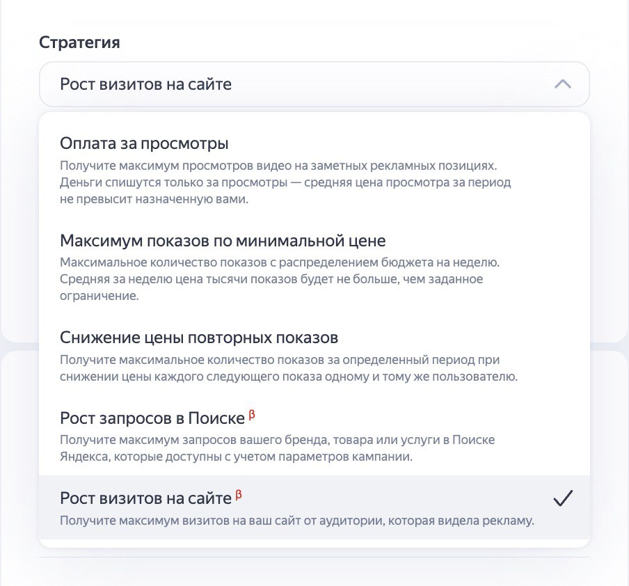 Новая стратегия «Рост визитов на сайте» помогает расширить аудиторию и увеличить эффективность рекламных кампаний. Тестовые запуски уже показали результаты с приростами в два раза по сравнению с сайтами без привлечения новой стратегии. Запустить ее можно в личном кабинете Директа, выбрав соответствующее название во время настройки кампании.