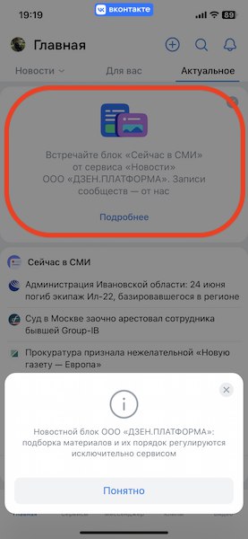 Агрегатор новостей Дзен теперь появился в мобильных приложениях соцсетей в тестовом режиме. По словам разработчиков, это первая интеграция платформы в свои продукты с момента покупки сервиса прошлой весной. У всех пользователей мобильных версий VK и ОК появилось уведомление с сообщением о тесте нового раздела.