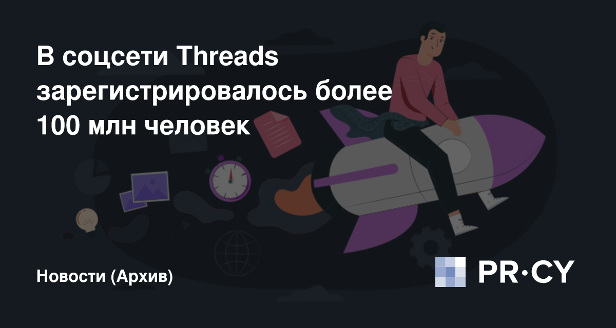За первые сутки в новой социальной сети Марка Цукерберга Threads зарегистрировалось 70 млн пользователей. По состоянию на 10 июля общее число перевалило за 100 млн. Данные приводит сервис аналитики Quiver Quantitative.