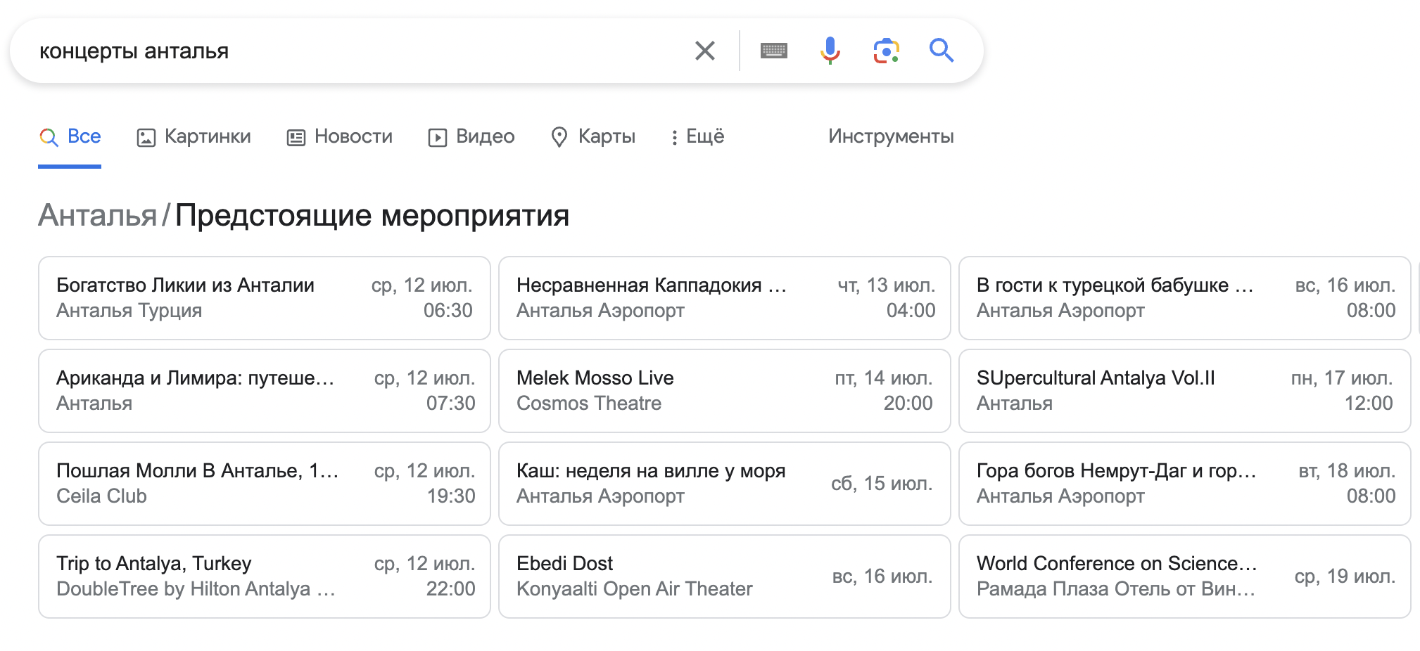 Расширенный результат может включать информацию и с одного сайта, и агрегировать ее с нескольких. Например, он может показывать списки вакансий для определенной локации или анонсы концертов с разных ресурсов.