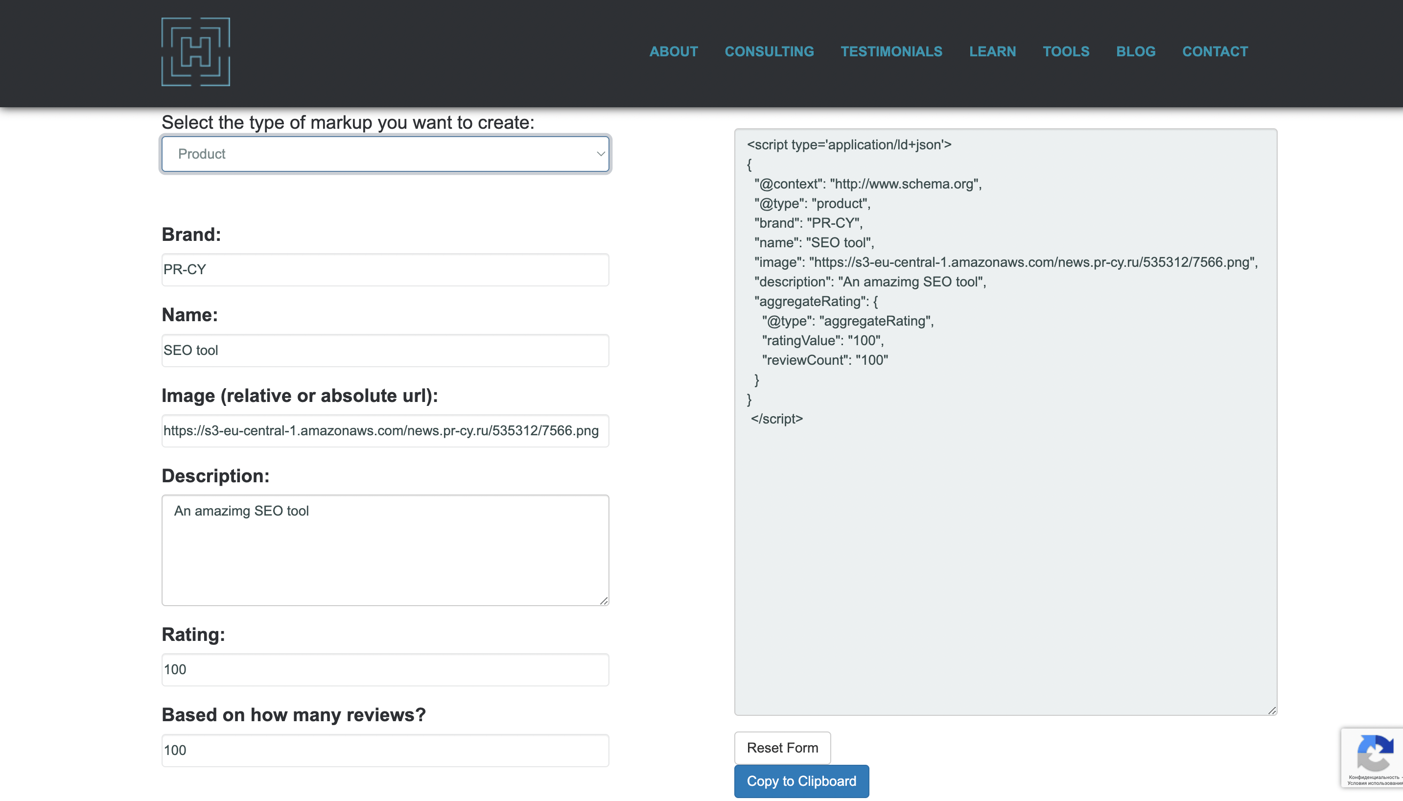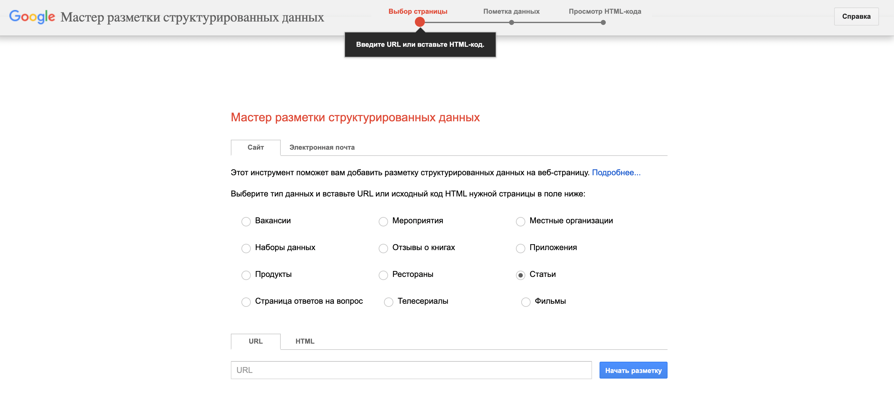 Сервисом очень просто пользоваться. Можно выбрать формат микроданных или JSON-LD.
