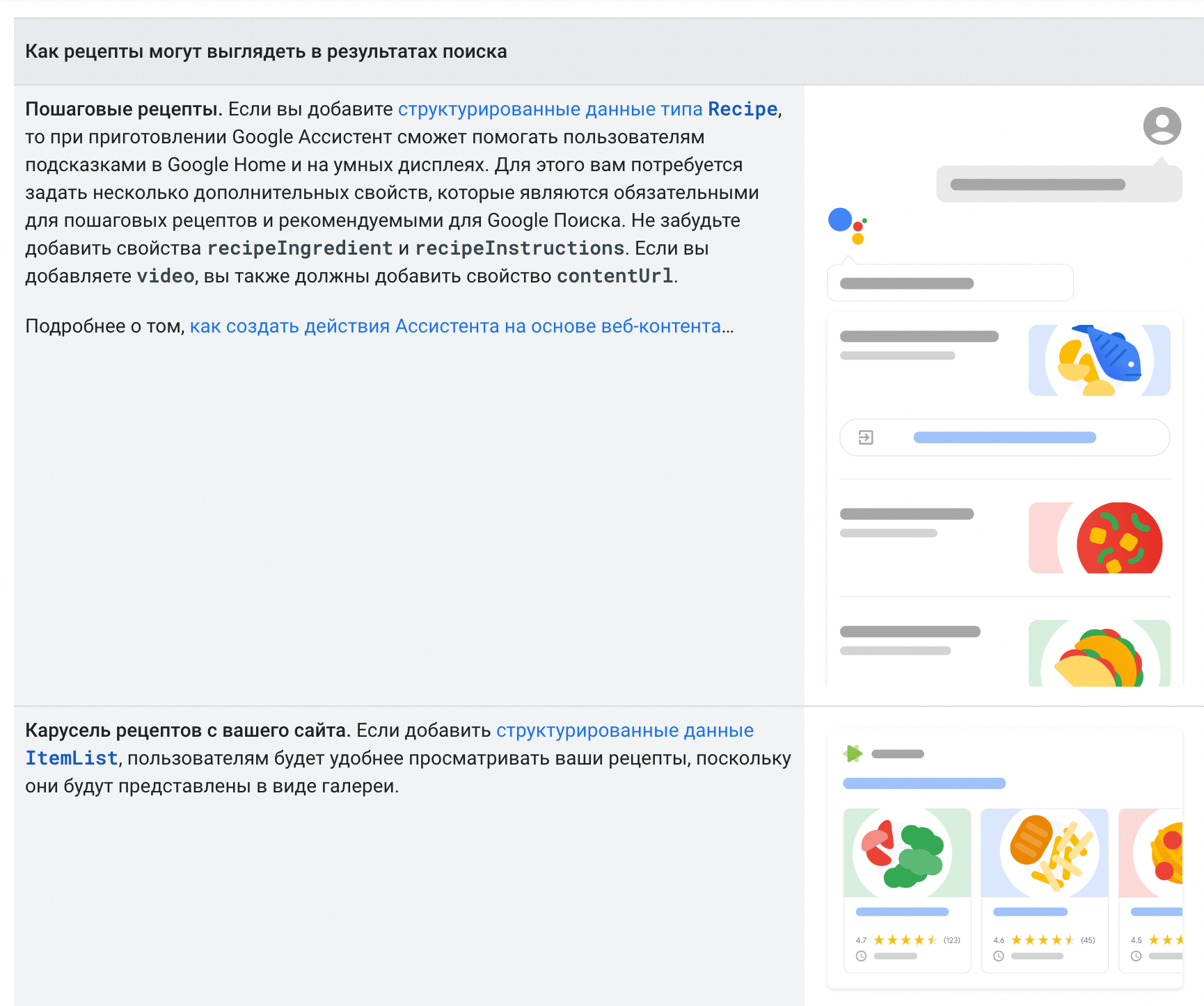 Как мы писали выше, Google поддерживает более тридцати видов расширенных результатов. Для сниппета, о котором идет речь в статье, подойдут Product, Recipe и Review, каждый из них работает для нескольких видов контента. Выберите в руководстве нужный.