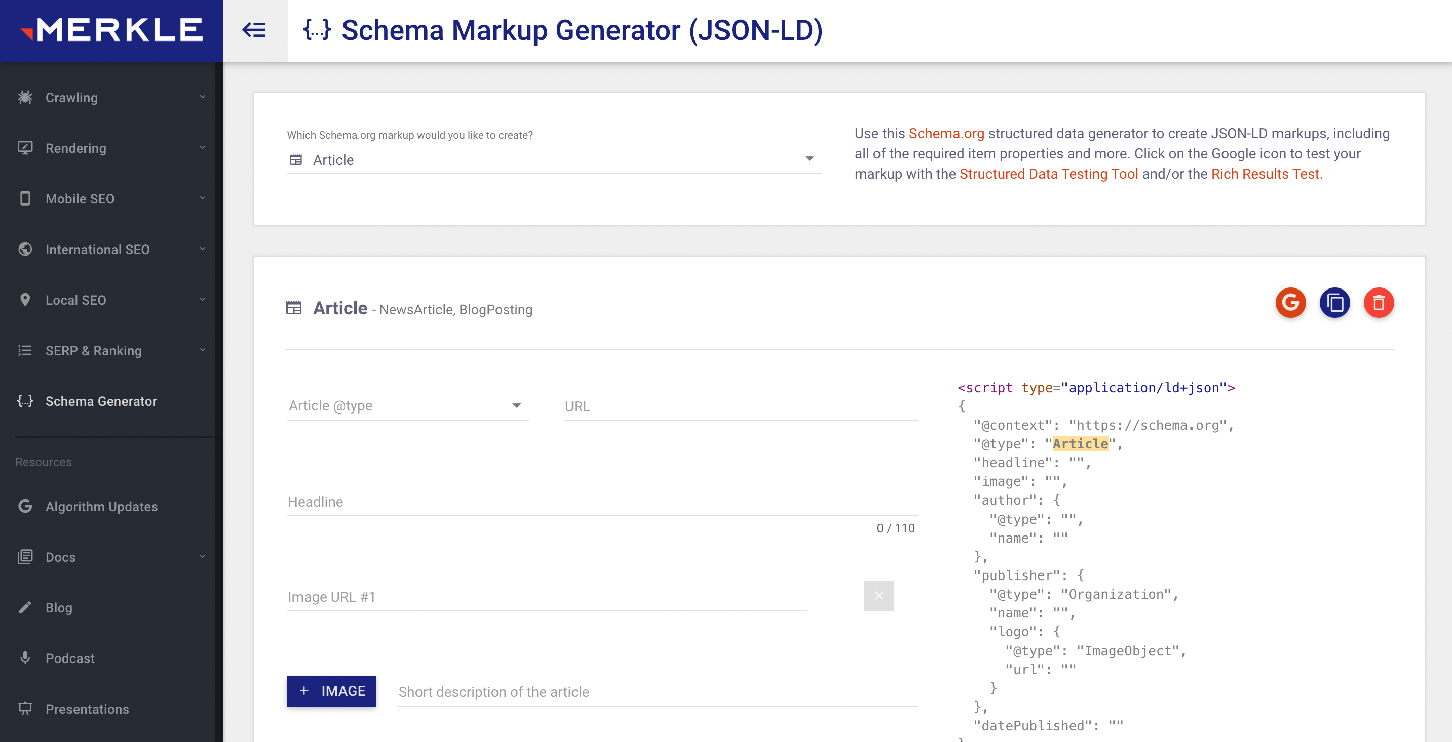 Сервис поддерживает JSON-LD. Здесь значения тегов микроразметки нужно ввести самостоятельно в зависимости от типа страницы. В результате вы также получите код, который нужно будет добавить на страницу.