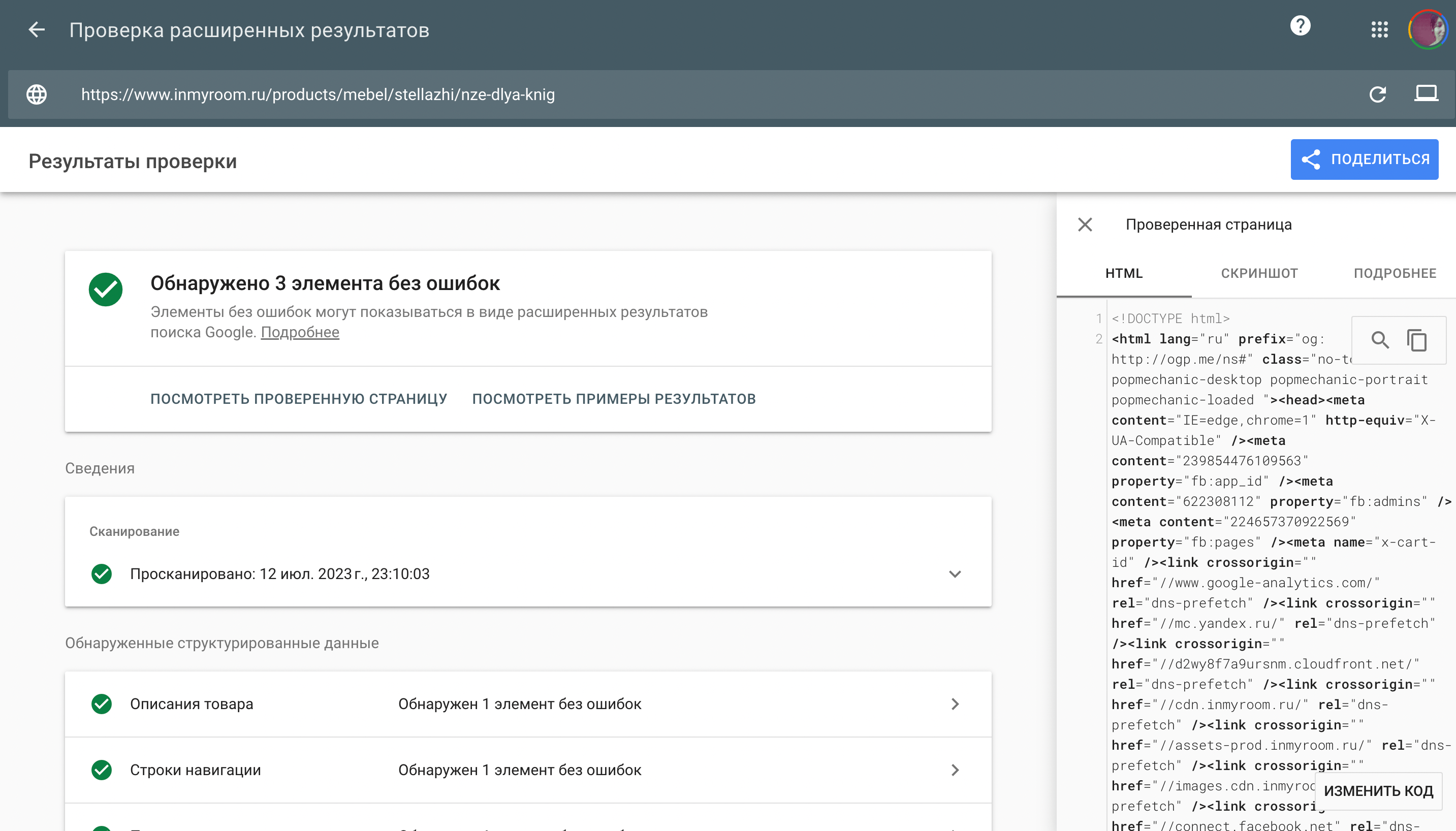 Чтобы убедиться, что для страницы доступно отображение в расширенных результатах, используйте инструмент от Google. Введите адрес страницы и дождитесь окончания проверки. Можно выбрать отображение на десктопе или на мобильных устройствах.