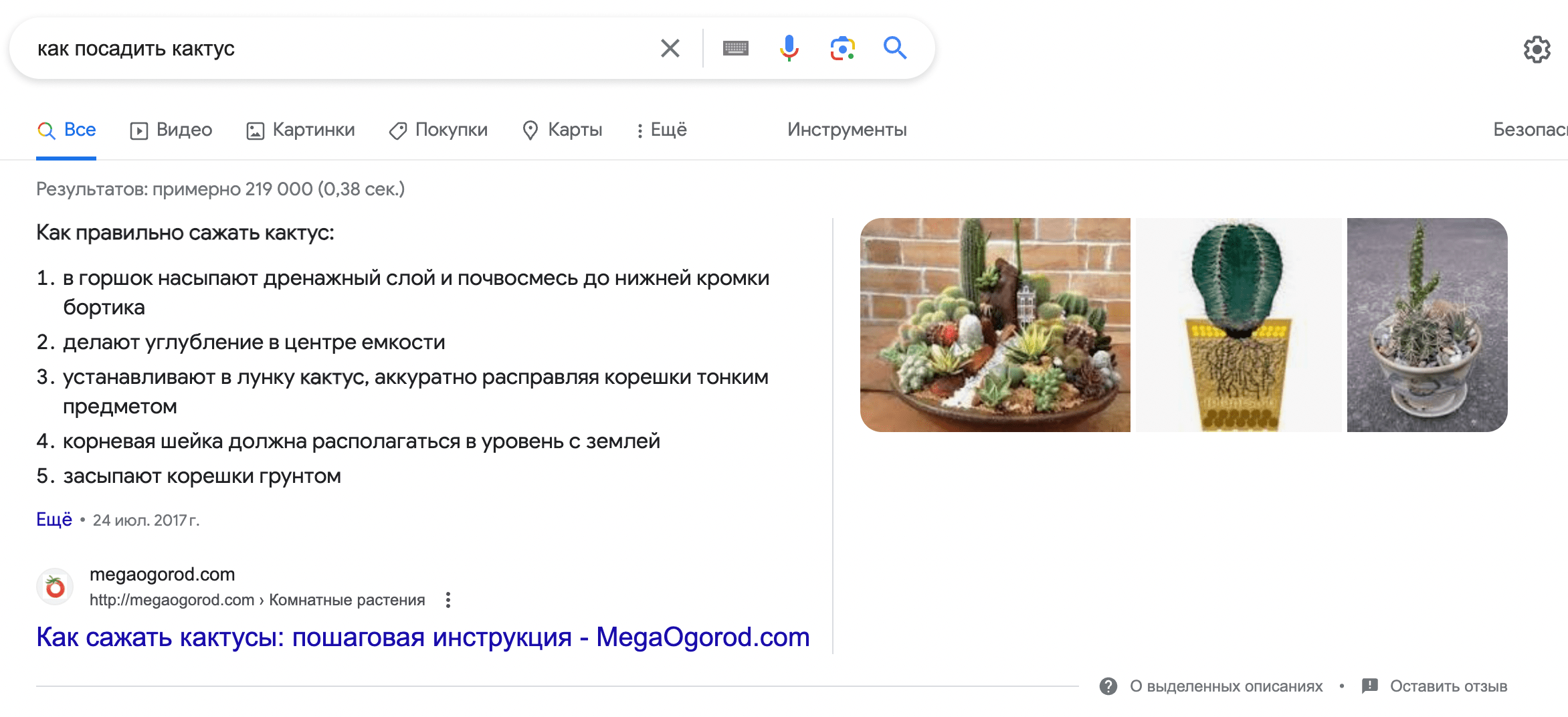 Еще один вариант результата выдачи — это выделенное описание или featured snippet по-английски. Еще его называют блоком быстрых ответов.