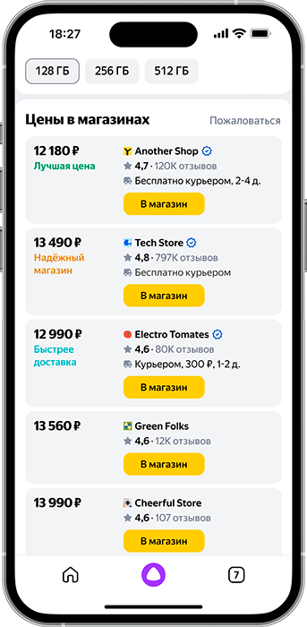 При скорости доставки преимущество в показах получает тот магазин, который берет за услугу меньше денег. При наличии нескольких одинаковых офферов, значок получит магазин, более популярный среди покупателей.
