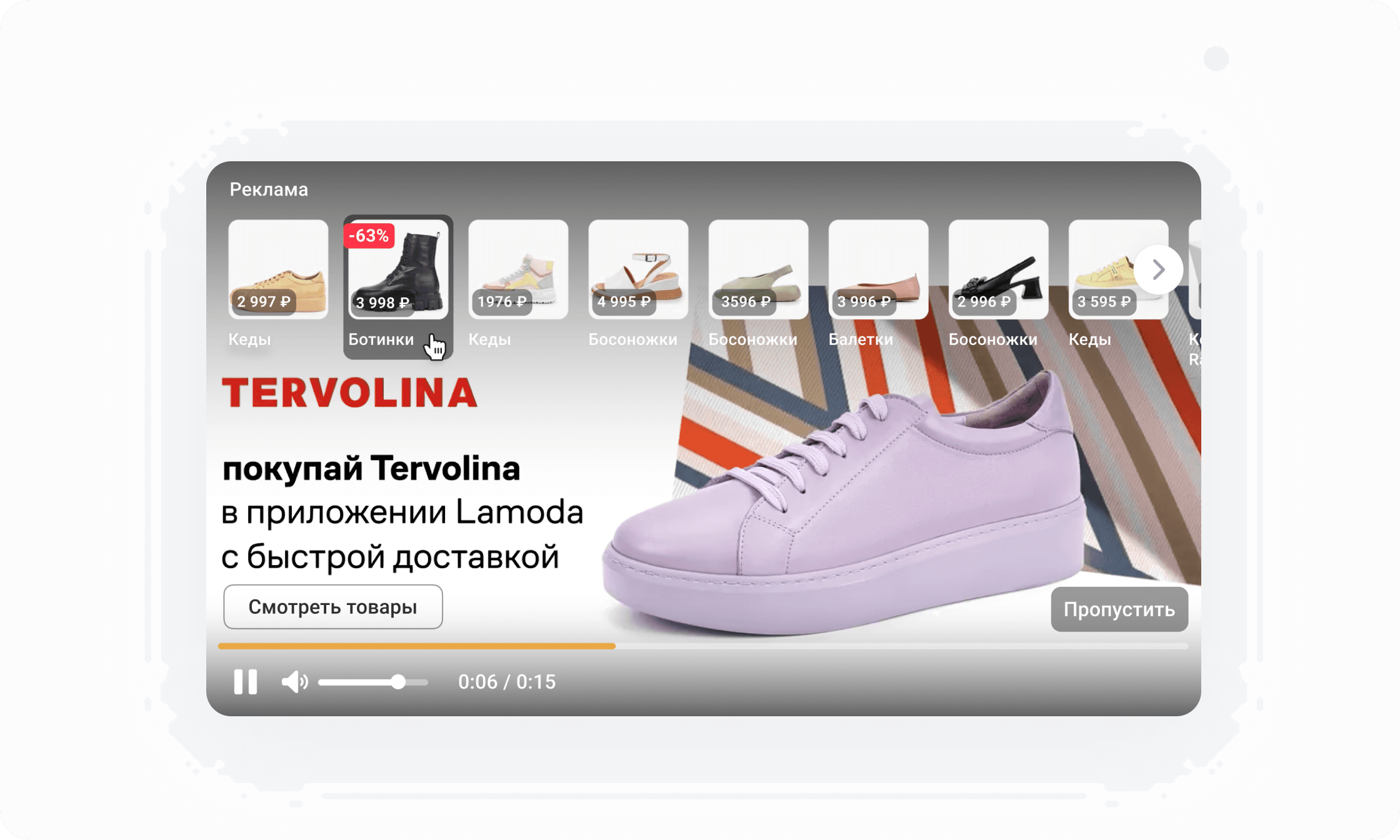 Новый формат Shoppable Ads — это интерактивная видеореклама с кликабельными элементами для покупки. В нем рекламодатели могут разместить до 20 товарных карточек, а само объявление демонстрируется как на десктопах, так и на мобильных устройствах. При клике на карточку пользователь переходит на страницу товара с возможностью покупки.
