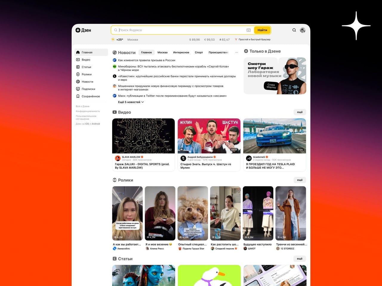 В новой версии dzen.ru для десктопов и мобильных устройств существенно изменился дизайн и функциональность. Теперь все материалы представлены в виде витрины, а для удобства контент поделен на разделы с форматами. Карточки публикаций разбиты по категориям видео, ролики или текстовые статьи.