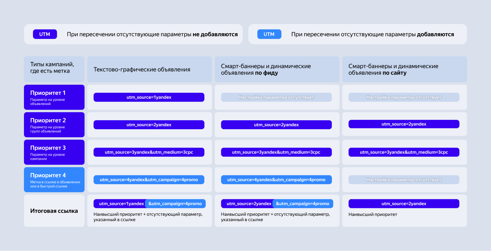 В обновленном блоке «Параметры URL» можно выбрать уровень. Обратите внимание, что итоговая метка зависит от приоритета параметра. Разработчики рассказали, как настроить нужную метку: