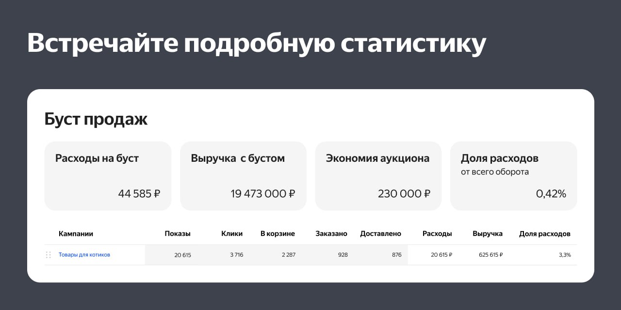 Разработчики изменили дизайн статистики в личном кабинете продавца на Маркете. Теперь вся основная информация отображается на главной странице буста: