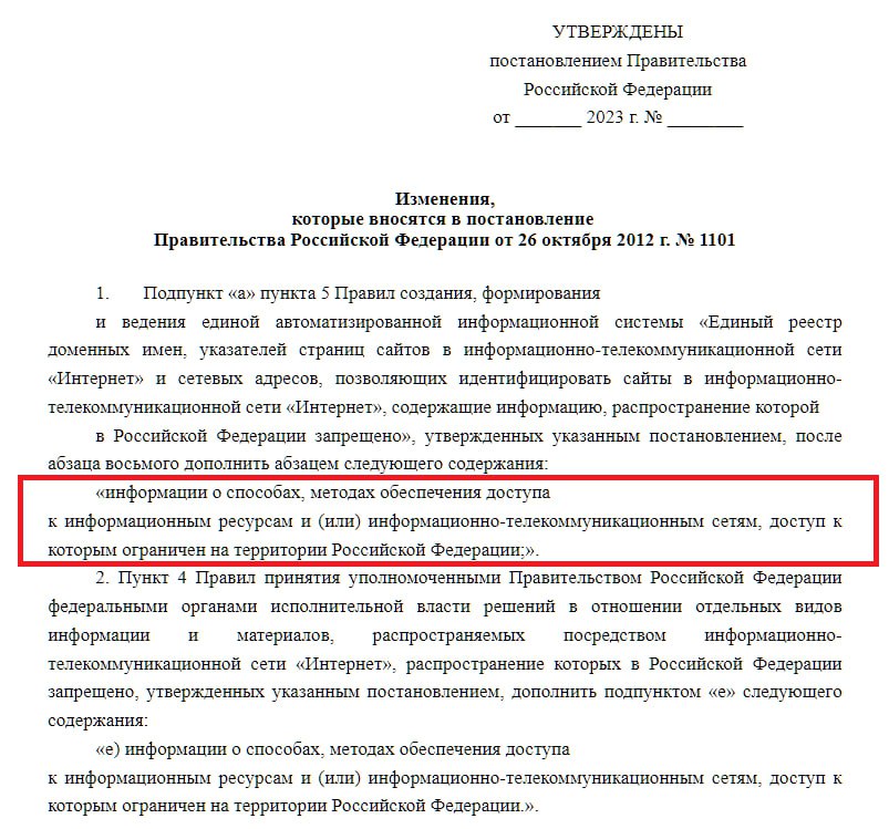 Минцифры России опубликовало проект постановления, согласно которому под запретом могут оказаться веб-сайты с инструкциями по обходу блокировок.
