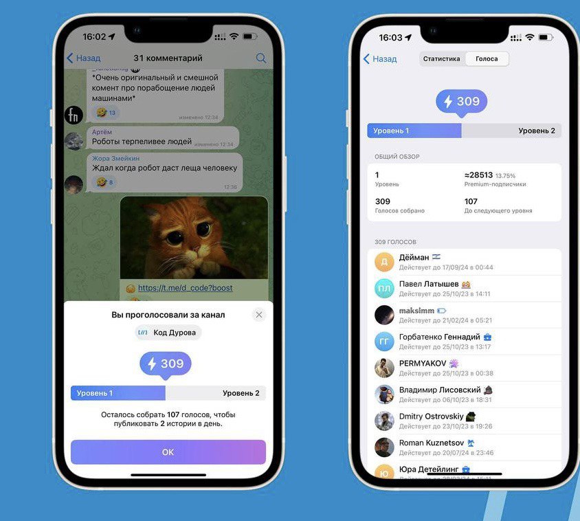 Вслед за публикациями сторис от лица сообществ за голоса от платных подписчиков Павел Дуров объявил о возможностях для владельцев каналов, получивших уровень продвижения. Среди них:
