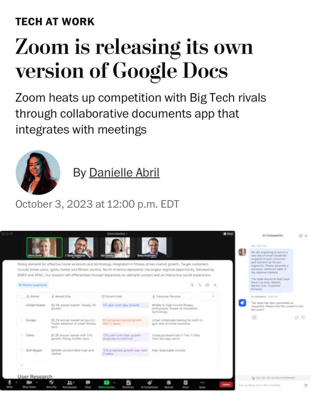 Создатели Zoom объявили о разработке нового проекта на своей ежегодной конференции Zoomtopia. Zoom Docs поможет в написании и редактировании документов в конференциях. Общие документы будут интегрированы в платформу Zoom, чтобы каждый участник мог работать с текстом.