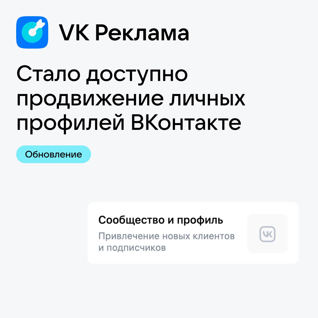 Пользователи сервиса смогут рекламировать персональные профили в соцсети с помощью нового способа продвижения. С его помощью можно находить новую аудиторию, повышать охват и активность, увеличивать число сообщений и реакций к записям. Для продвижения личного профиля в кабинете VK Рекламы нужно выбрать цель «Сообщество и профиль», вставить ссылку на страницу и продвигать либо отдельные посты, либо создавать новые объявления через инструменты рекламного кабинета.