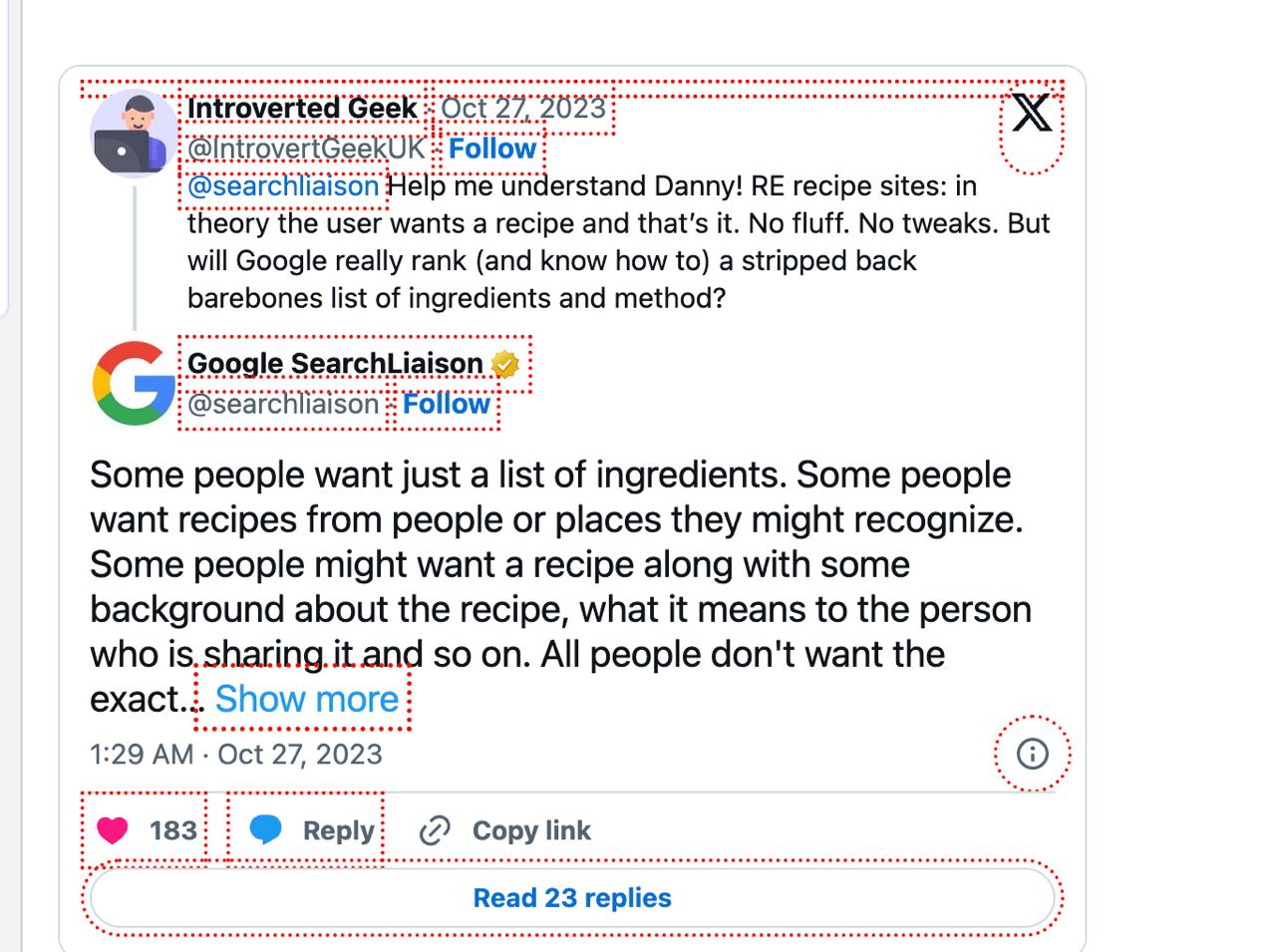 Дэнни Салливан заявил, что команда разработчиков занимается обновлением для пользователей, которые ищут, как приготовить блюдо. Он сказал, что авторам следует убедиться в пользе своего кулинарного контента: он доступен для понимания, разделен на смысловые блоки и лишен ненужной информации.