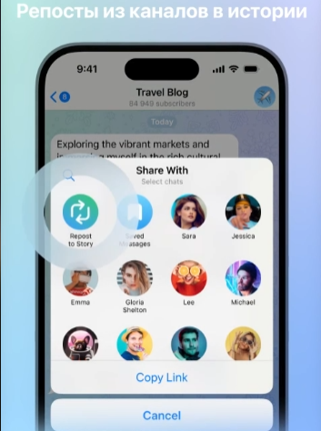 Пользователи могут добавлять в сторис репосты записей из канала. В истории останется копия сообщения, ее можно редактировать, масштабировать и дополнять.