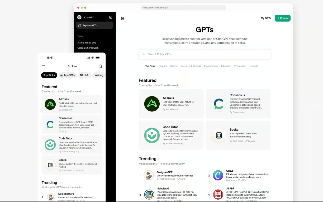 Расширения разбиты по категориям, и в каждой из них представлены свои лидеры в категории Trending. Каждую неделю в ней обновляется рейтинг избранных сборок, которые выбирают сами OpenAI. В первой подборке появились приложения от Canva, ридер PDF-файлов, утилита для модификации дизайна веб-страниц и даже база научных данных, объемом в 200 миллионов статей.