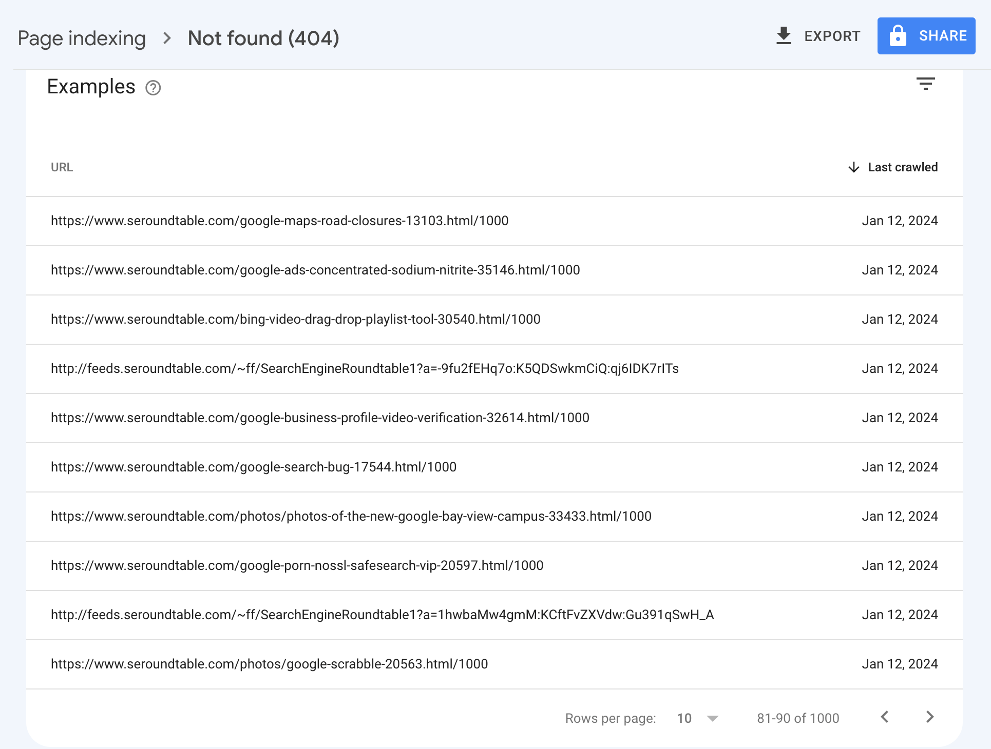 Зарубежные специалисты столкнулись с тем, что в отчетах Google Search Console появилось большое количество страниц с ошибками 404 (страница не найдена). Всех их объединяет то, что URL ненайденных страниц оканчиваются на /1000.