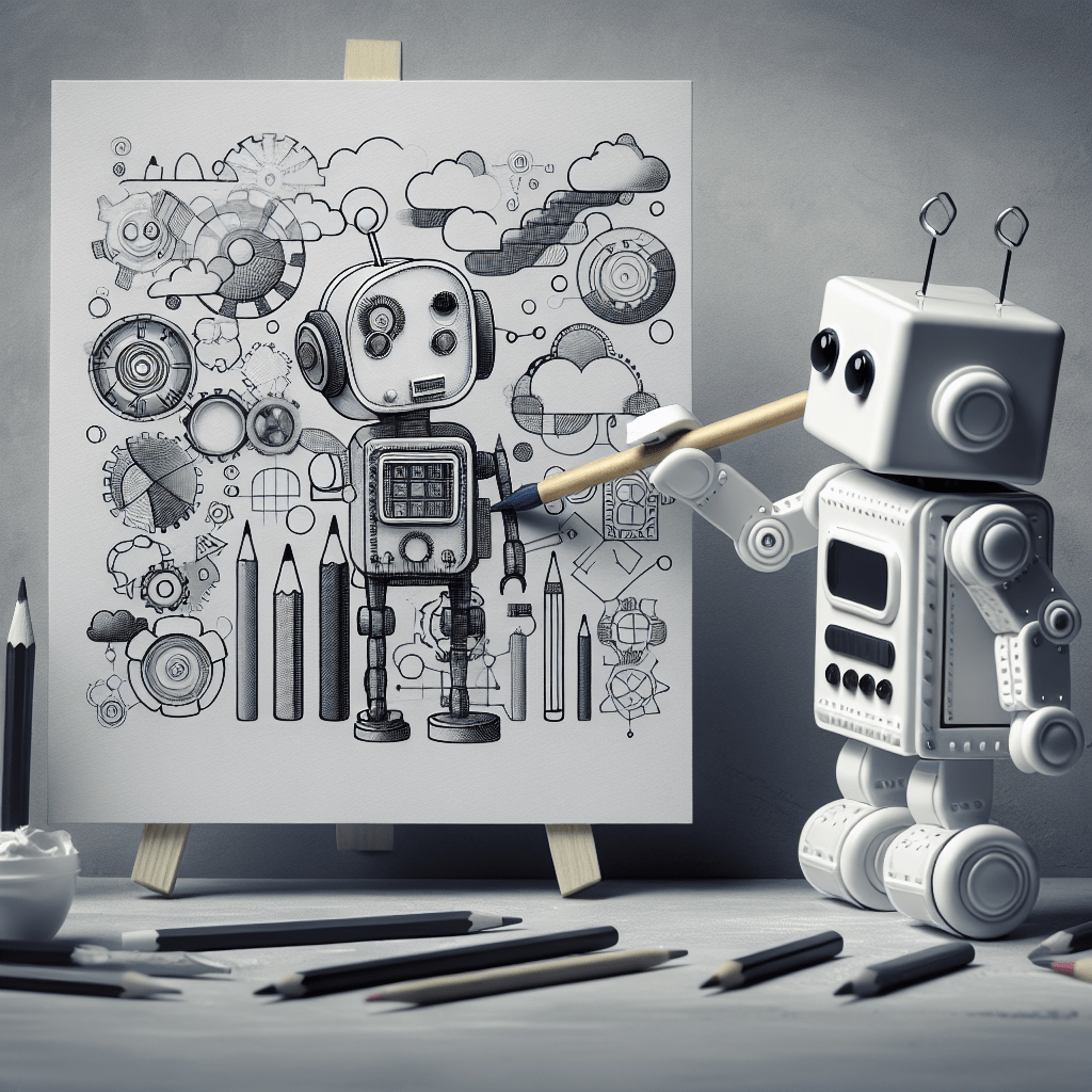 А вот, что инструмент сгенерировал по запросу «робот рисует картину»: