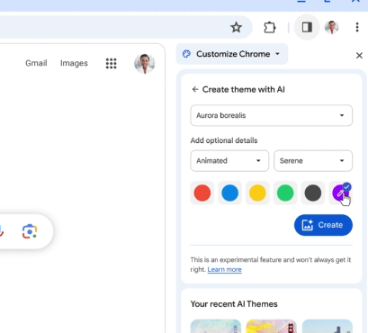 Вслед за мобильными устройствами на базе Android в Chrome появятся кастомизированные обои: тему браузера можно создать на основе предмета, стиля, цвета или настроения. Нейросеть предложит сразу несколько вариантов на выбор, а сами разработчики уже создали несколько готовых решений на основе новой технологии.