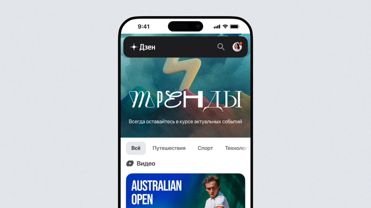 Раздел «Тренды» состоит из шести тематических вкладок: Спорт, Еда, Гейминг, Технологии, Путешествия, Красота и Стиль. В них размещаются разноформатные публикации от экспертных каналов. Выборку определяет алгоритм по заданным типам сигналов. Помимо лайков, дочитываний и сохранений от пользователей, он учитывает аналитические данные трендов. К таким сигналам относится, например, динамика поисковых запросов.