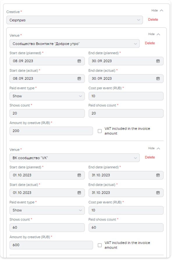 В обновленном документе для рекламодателей изменилась форма отчетности. Теперь при подаче статистики по одному креативу нужно создать отдельные разбивки за каждый месяц. Количество показов и суммы для каждого месяца также прописываются отдельно.
