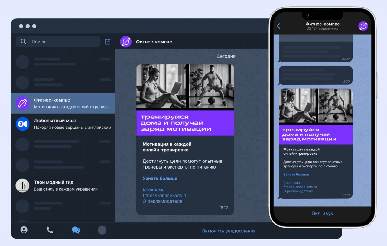 Рекламу для канала подбирает нейросеть Яндекса, ориентируясь на тематику и тип контента. Рекламные посты публикует рекламный бот в виде поста с картинкой или видео с ссылкой. Все данные по маркировке передаются в ЕРИР автоматически.