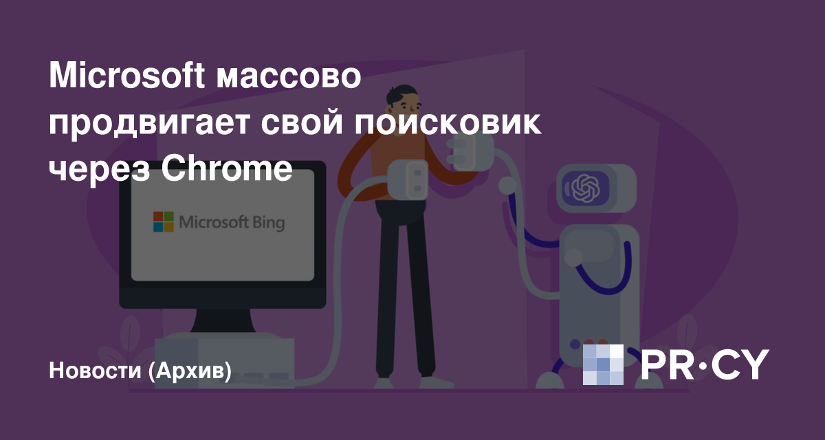 В Windows появилась агрессивная всплывающая реклама, напоминающая по оформлению вредоносное ПО. В браузере Google Chrome возникает окно с предложением перейти на Microsoft Bing. Если нажать в подсказке «Да», вы установите Bing и сделаете его браузером по умолчанию.