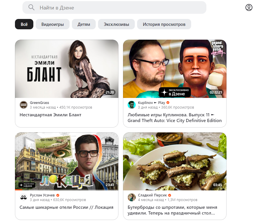 В нем также есть блок с короткими горизонтальными видео, действующая система рекомендации и подписок, а Яндекс охотнее выводит результаты с этой площадки на вкладке «Видео».