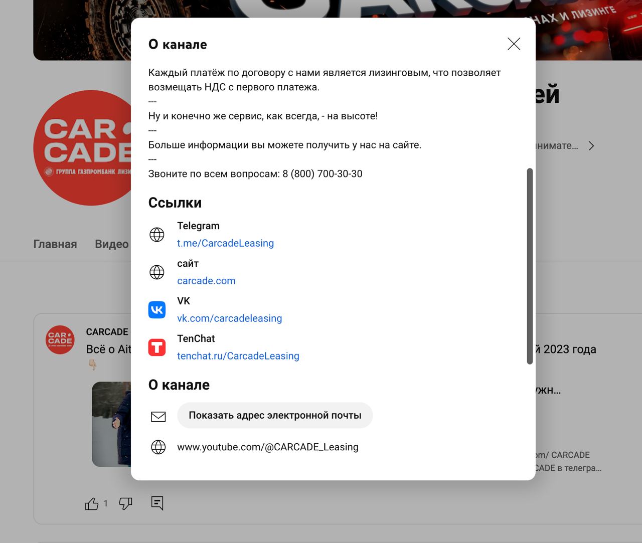Помимо самих видео в описание канала можно добавить УТП, ссылку на сайт, Телеграм-канал и другую информацию, которая приведет к вам клиентов.
