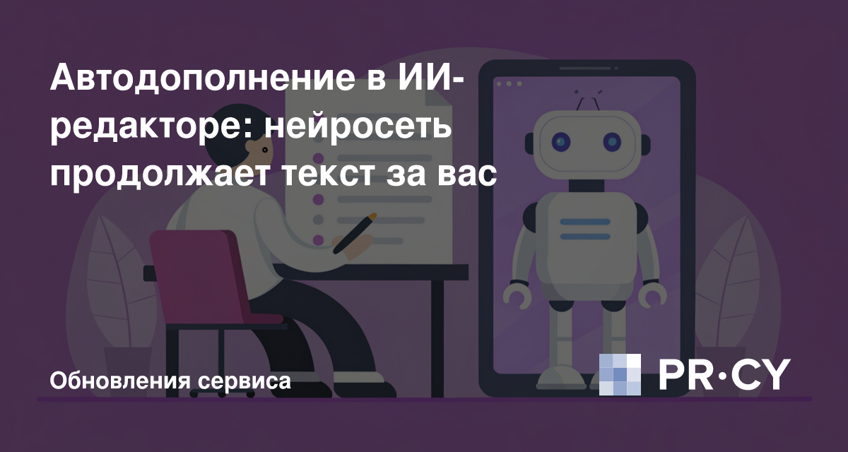 Мы добавили новые возможности для генерации контента в инструмент «ИИ-редактор». Теперь вы сможете пользоваться нейросетью прямо во время написания статьи. В этом вам поможет функция «Автодополнение».