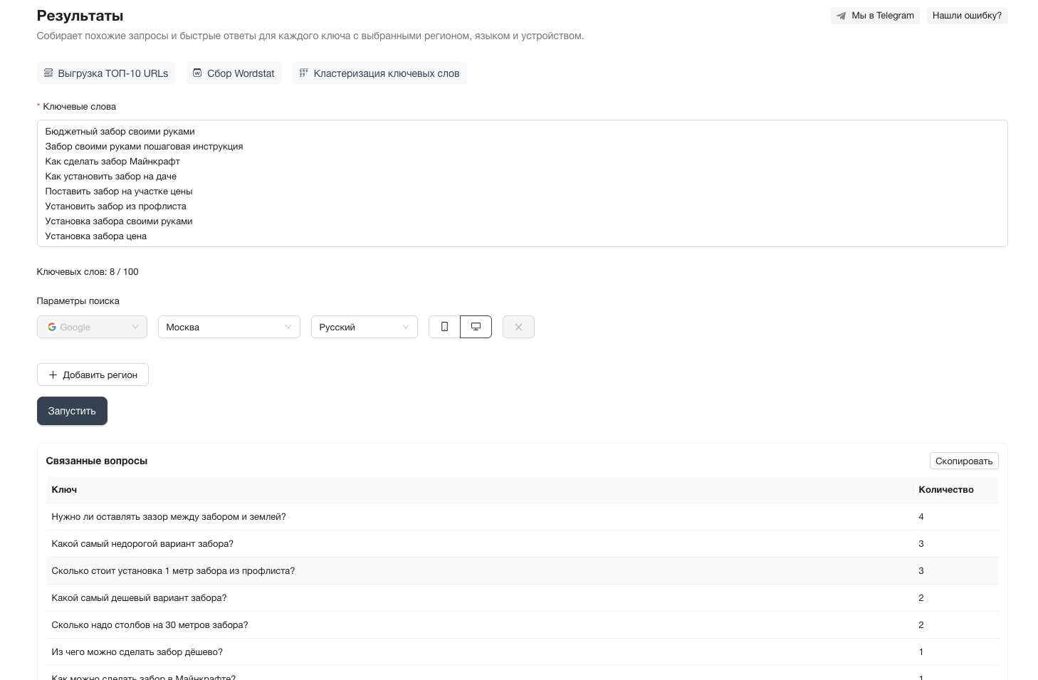 Находите связанные поисковые запросы и блоки быстрых ответов для вашей тематики.