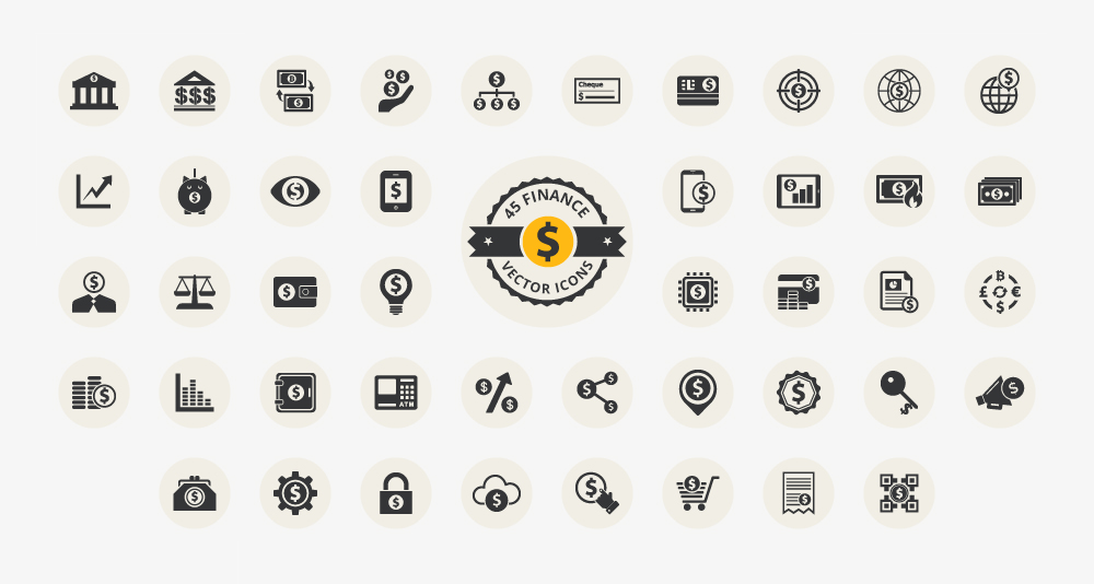 Отличная коллекция для владельцев сайтов на финансовую тему. 45 редких финансовых иконок во всех популярных форматах. Основной плюс коллекции – иконки выполнены в не самом очевидном стиле, то есть, ваш пользователь не заскучает от вида традиционных корзин с продуктами и графиков.