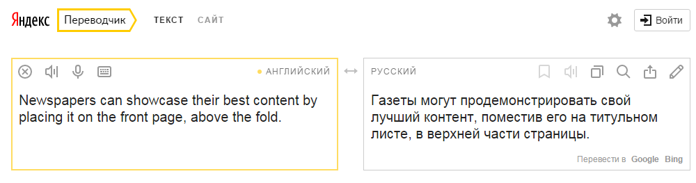 1) обычный перевод (для словосочетаний, текстов и сайтов)