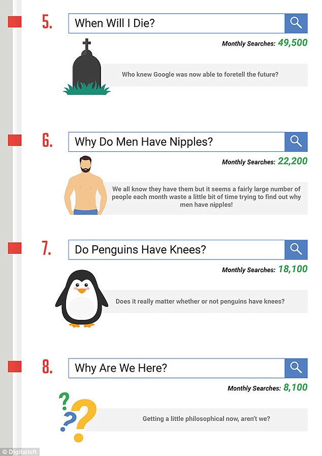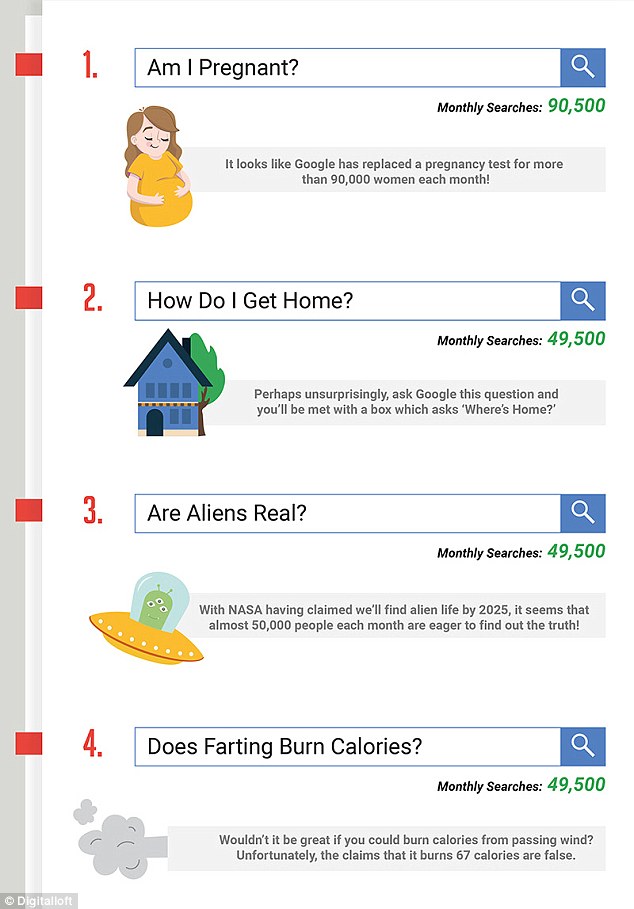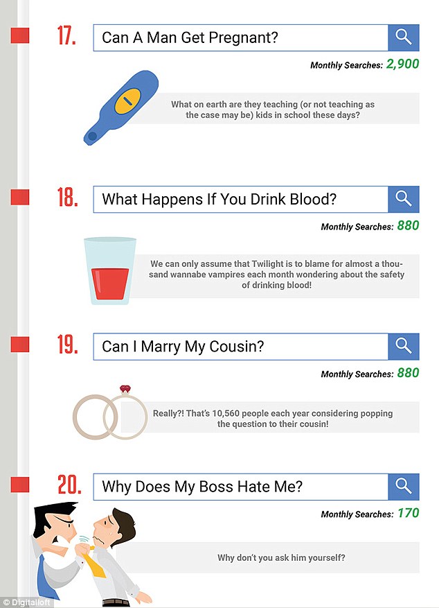 Итак, самые удивительные запросы в Гугл выглядят следующим образом. Ах да, зеленые цифры на картинках указывают количество поисковых запросов по итогам месяца.