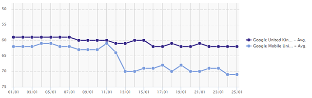 Дело было так… Есть в Великобритании некий сайт под названием «Just Miniatures» (рус. – просто миниатюры). По словам его владельца, после запуска в первых числах 2017 года нового алгоритма Гугл, который наказывает ресурсы за назойливую рекламу (в частности, всплывающие окна), данный проект заметно просел в результатах мобильного поиска. Соответствующий скрин веб-мастером прилагается: