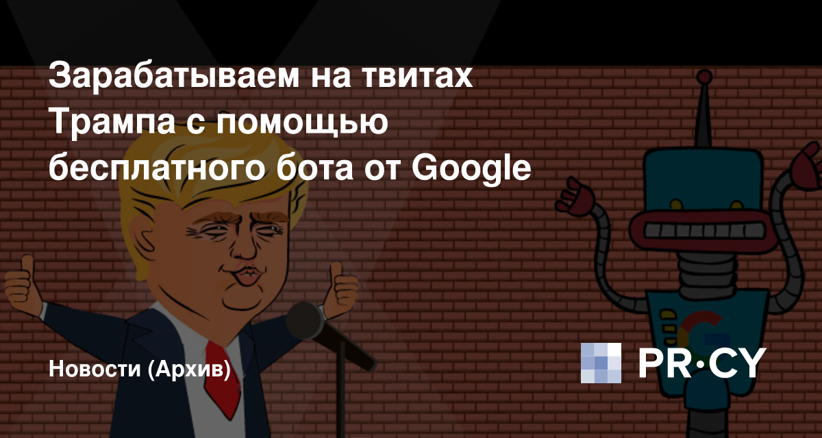 Директор по софту из экспериментального подразделения Google X Robotics в составе Корпорации добра Макс Браун решил заработать на этом. Он создал полностью автоматизированного биржевого бота, который анализирует твиты Трампа и покупает / продает акции упоминаемых в сообщениях миллиардера компании в зависимости от того, похвалил их Трамп или раскритиковал.