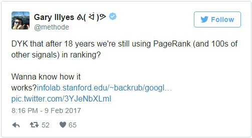 «А знаете ли вы, что после 18 лет мы все еще используем Google PageRank (и сотню других сигналов) в процессе формирования результатов поиска?».