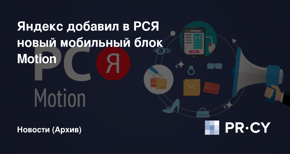 Команда Рекламной сети Яндекса (РСЯ) объявила о доступности нового рекламного блока для мобильных устройств, получившего название Motion. Этот блок появился благодаря многочисленным экспериментам Яндекса. Исследования компании показали, что в случае его применения показатель кликабельности оказывается в 2-4 раза выше по сравнению с другими популярными блоками РСЯ.