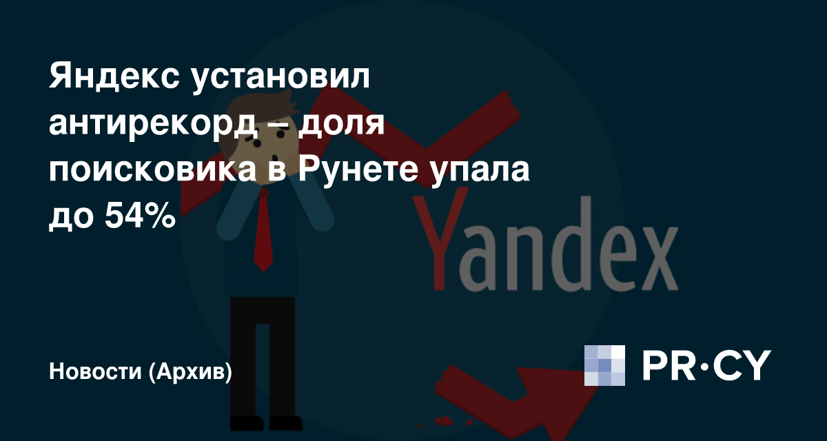 Яндекс установил антирекорд – доля поисковика в Рунете упала до 54%
