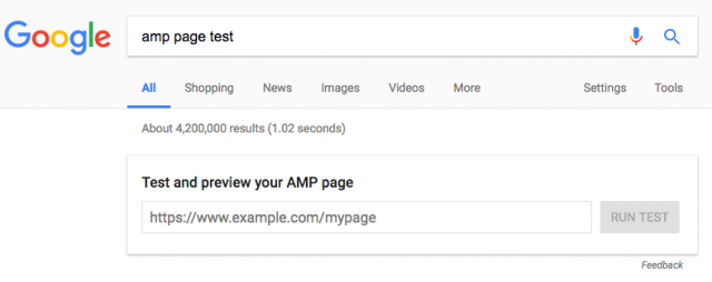 Разница лишь в том, что тест «мобилопригодности» прямо из выдачи Google доступен в Рунете, а вот проверка ускоренных мобильных страниц в SERP по соответствующему запросу в Google.ru пока отсутствует.