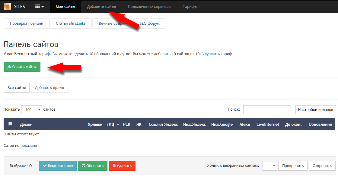Добавление сайтов в панель SITES.PR-CY