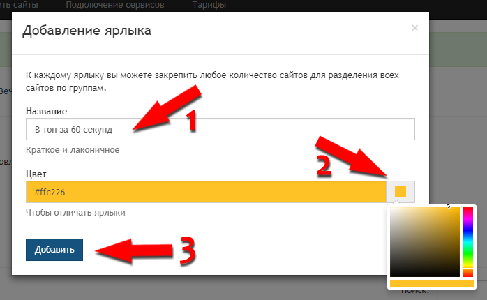 В открывшемся окне «Добавление ярлыка» задайте его название, цвет и нажмите кнопку «Добавить».