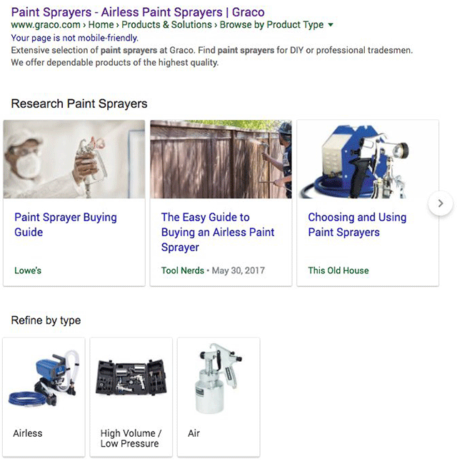 Новинка получила название «Research», что в переводе означает «исследование» или «исследовать» и реализована в виде отдельного блока, представляющего собой поисковую карусель (см. ниже).