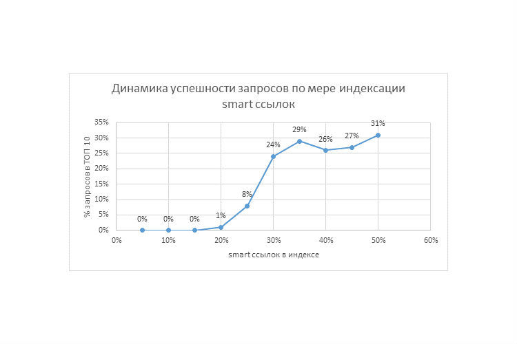 Через 2 месяца были подведены первые результаты. Скорость выхода в ТОП по низкочастотным запросам выросла на 30%: поисковые системы давали больший вес ссылкам, размещенным на близких по смыслу страницах.