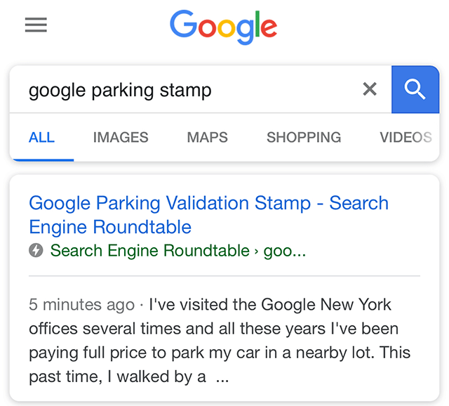Надпись «5 minutes ago» в левой части сниппета сигнализирует о том, что контент был выложен в Сеть всего 5 минут назад. Таким образом Google помечает новые материалы, недавно появившиеся в результатах поиска.